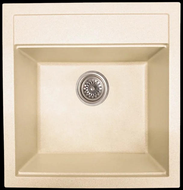 Кам'яна кухонна мийка бежева, квадратная гранітна мийка для кухні бежевого кольору зі штучного каменю Akvatika (9750018)