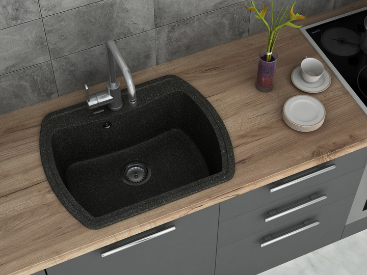 Гранітна мийка Mira MONTI чорний 620 х 435 мм