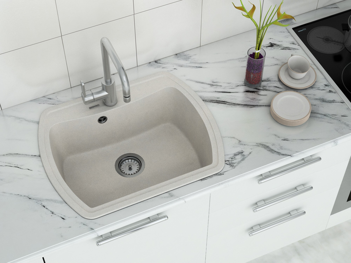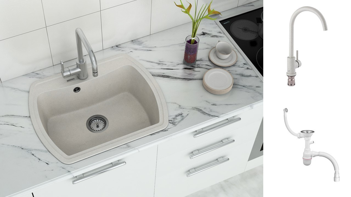 Мийка для кухні Diamant Moderno гранітна зі змішувачем та сифоном Бежевий