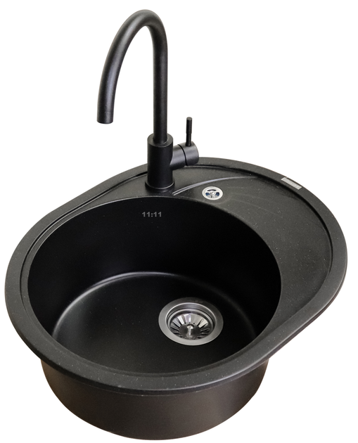 Гранітна мийка для кухні AquaMill MONACO чорна + Змішувач
