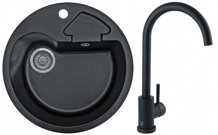 Мийка кухонна, гранітна, кругла Valetti 68S 51х51см Чорна + змішувач
