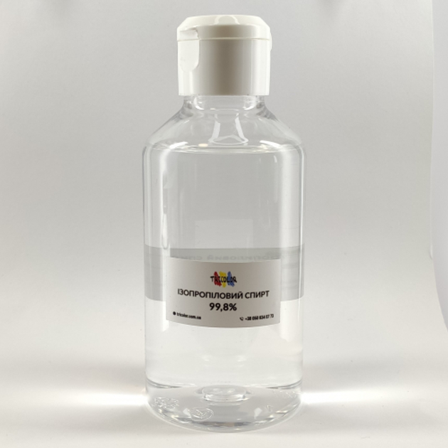 Ізопропіловий спирт 99,8 Tricolor (прозорий флакон, біла кришка фліп-топ) 200 мл. 5 шт.
