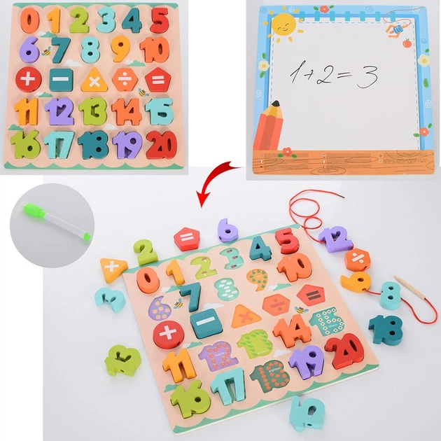 Дерев'яна іграшка Рамка-вкладиш цифри математичних знаків MD1844 No Brand