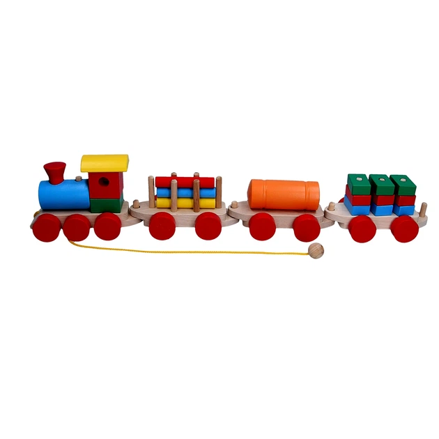 Дитяча іграшка розвиваюча дерев'яна Jooki "Паровоз і 3 вагони".