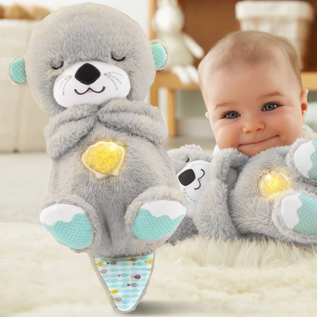М'яка іграшка-обіймашка нічник для сну з функцією дихання "Казкова видра" Світло-сірий (HA-400)