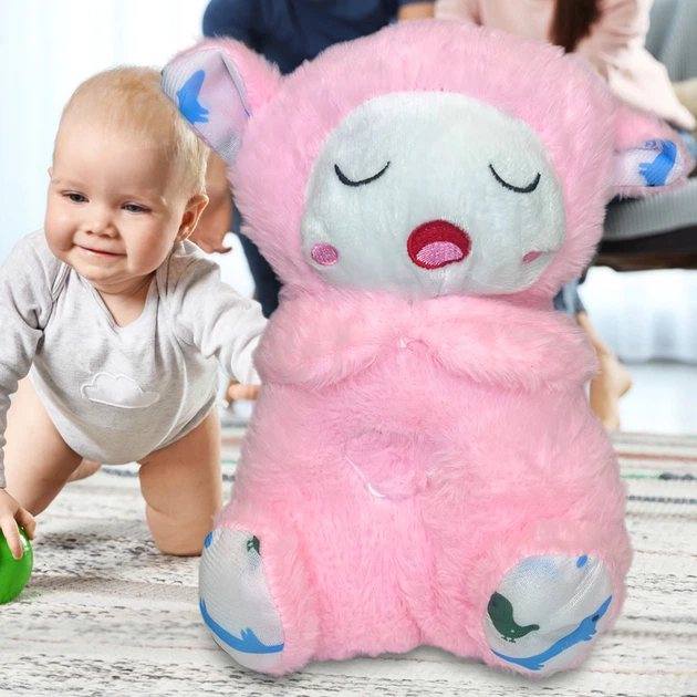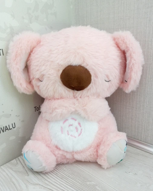 М'яка іграшка нічник Казкова Коала з функцією дихання, мелодія 30 см, рожевий колір