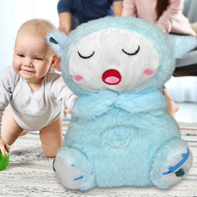 М'яка іграшка нічник "Казкова овечка" з функцією дихання, мяким підсвічуванням, Блакитний
