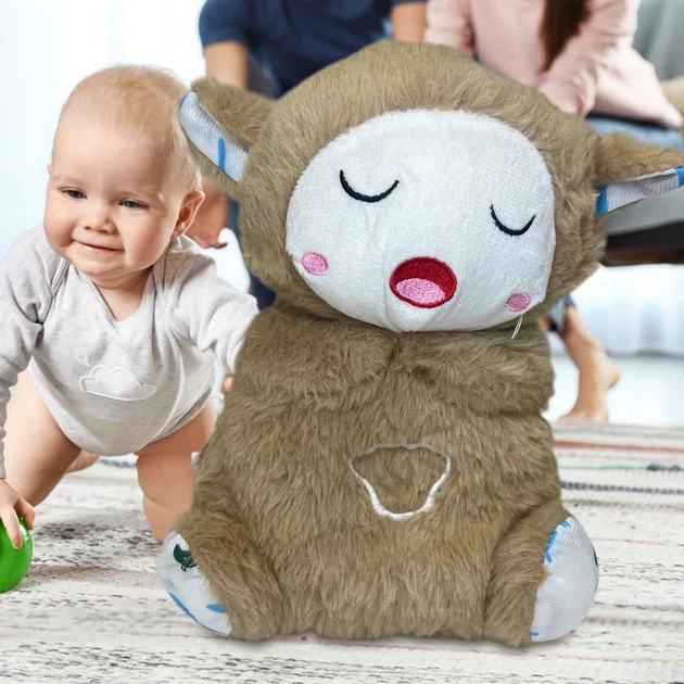 М'яка іграшка нічник "Казкова овечка" з функцією дихання, мяким підсвічуванням, Світло-коричневий