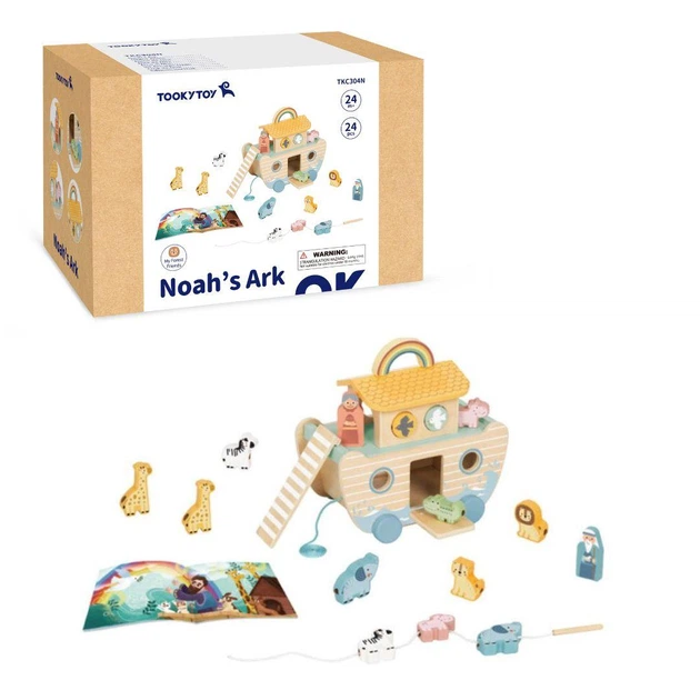 Дерев’яна іграшка ковчег-каталка з тваринами та шнурівкою, книга, 24 деталі, 271817,5 см (TKC304N)