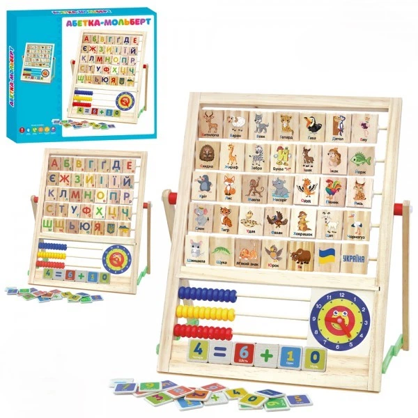 Дерев'яна іграшка Центр розвиваючий MD 1609-UA цифр, фігури, слова рус/анг