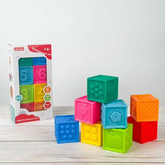 Тактильні кубики для найменших 12шт набір, силіконові, розвиваючі, іграшка на рік, на народження