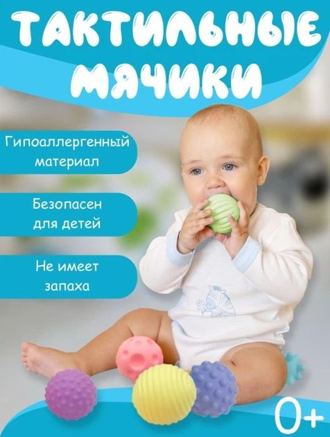 Набір масажних сенсорних м'ячиків іграшок 6шт по 6см у подарунковій коробці. Тактильні
