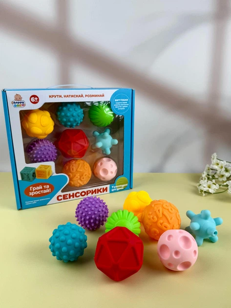 Набір масажних сенсорних м'ячиків іграшок 8 шт по 6см у коробці. Тактильні для вани