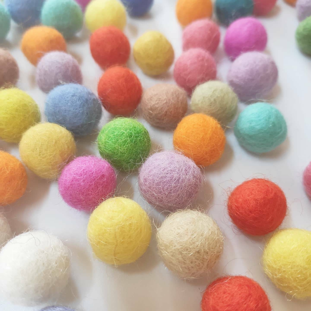 Вовняні кульки різнокольорові, діаметр 1,5 см, ручна робота, 20 шт