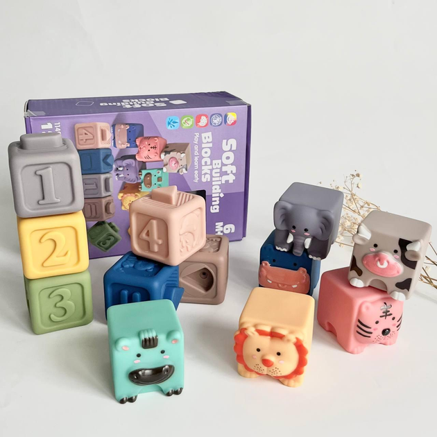 Тактильні кубики для найменших 12шт набір, силіконові, розвиваючі, іграшка на рік, на народження