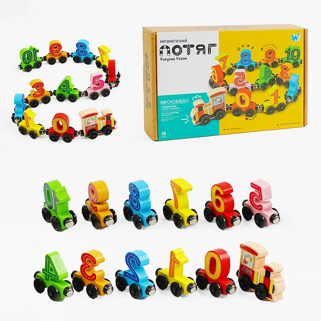 Потяг магнітний C 61400 "WToys", цифри, дерев'яні елементи, в коробці