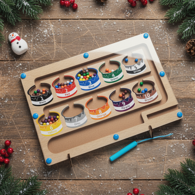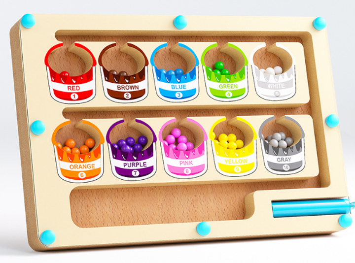 Дерев’яний магнітний сортер кульок Монтессорі для дітей, розвивальний лабіринт із кульками для вивчення кольорів, іграшка дл