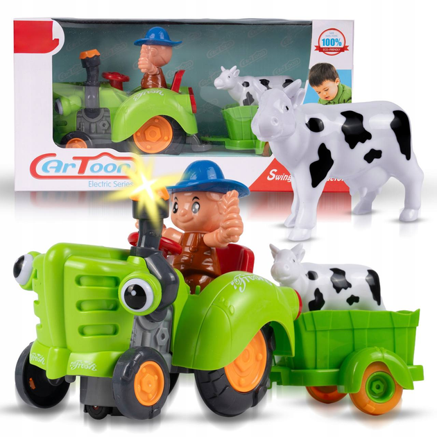 Дитячий музичний зелений трактор HD 963 з знімним причепом, музичними та світловими ефектами