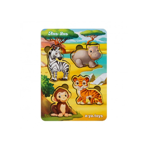 Дерев'яний пазл "Тварини Африки-2" Ubumblebees (ПСФ060) PSF060 фон з підказкою