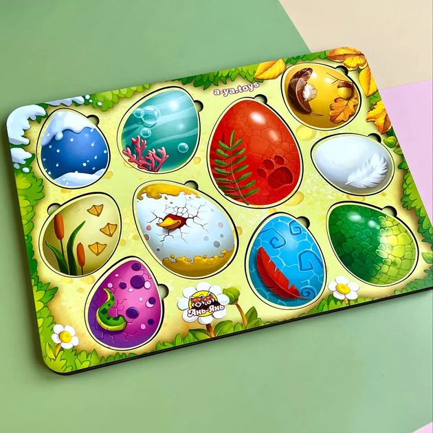 Іграшка Дерев'яний сортер-пазл (дерев'яна вкладка) "Хто в яйці?"