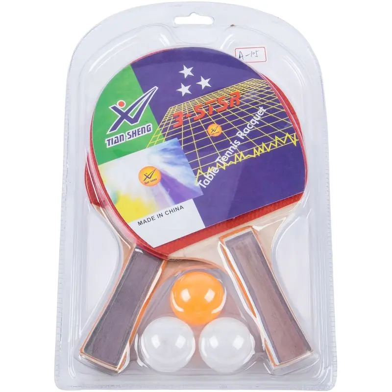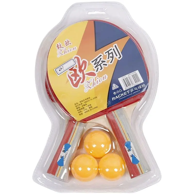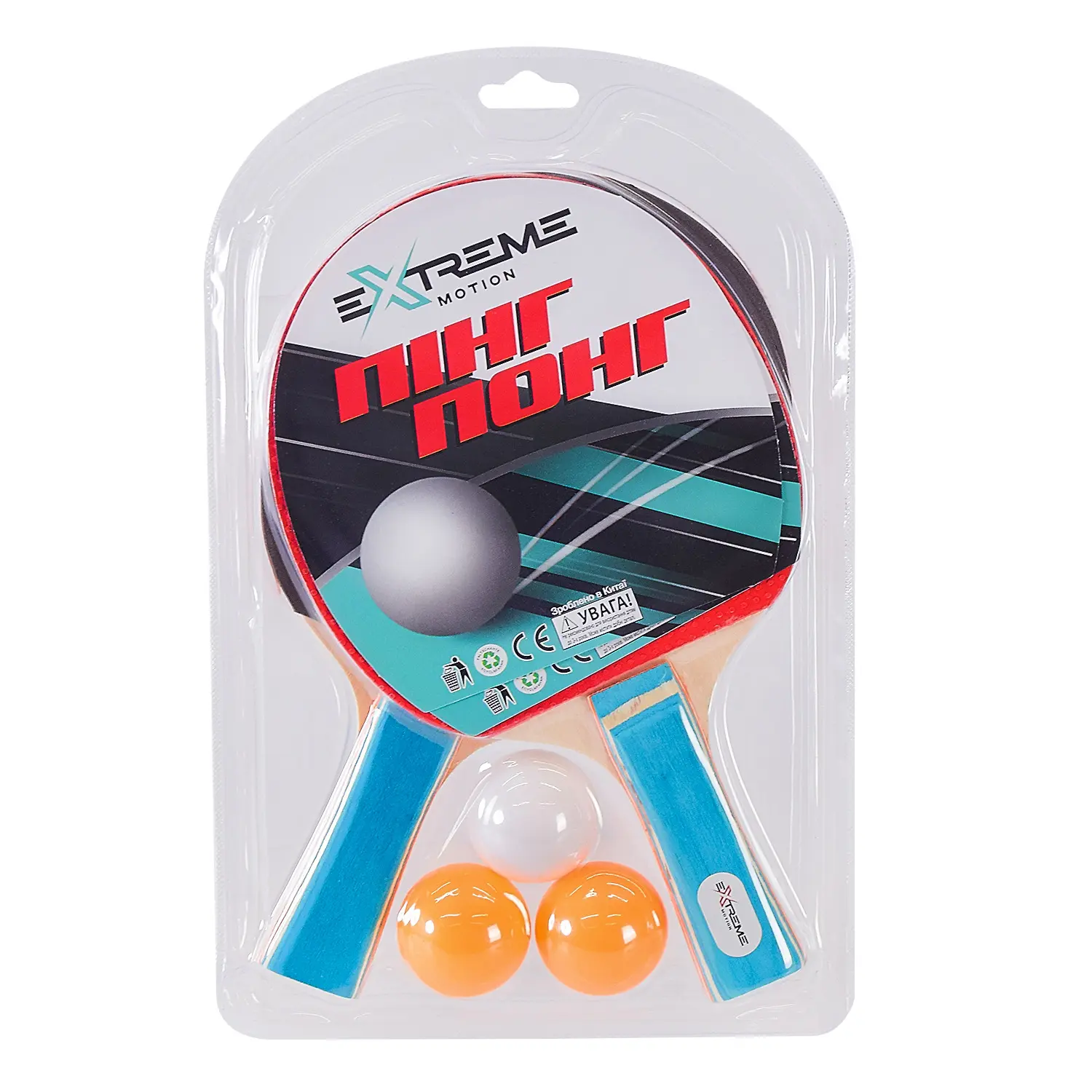 Набір для настільного тенісу, ракетки, товщина 0.9 см, кольорова ручка, 3 м’ячі, пластик, BT-PPS-0056