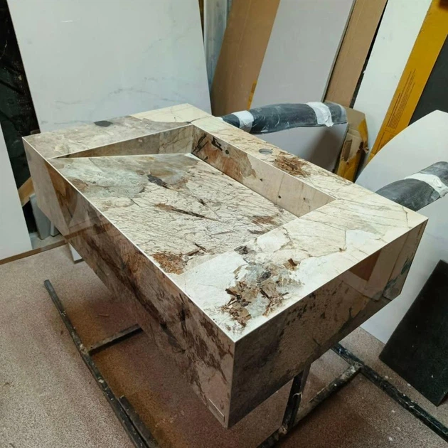 Умивальник подвійний з керамограніту, раковина подвійна з каменю, умивальники з керамограніту