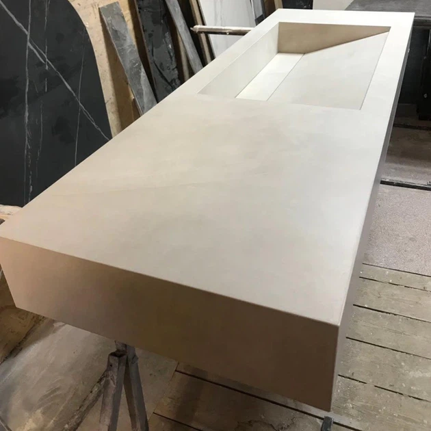 Умивальник підвісний з керамограніту із стільницею та щілинним зливом в бежевому кольорі 1200*500*200 мм