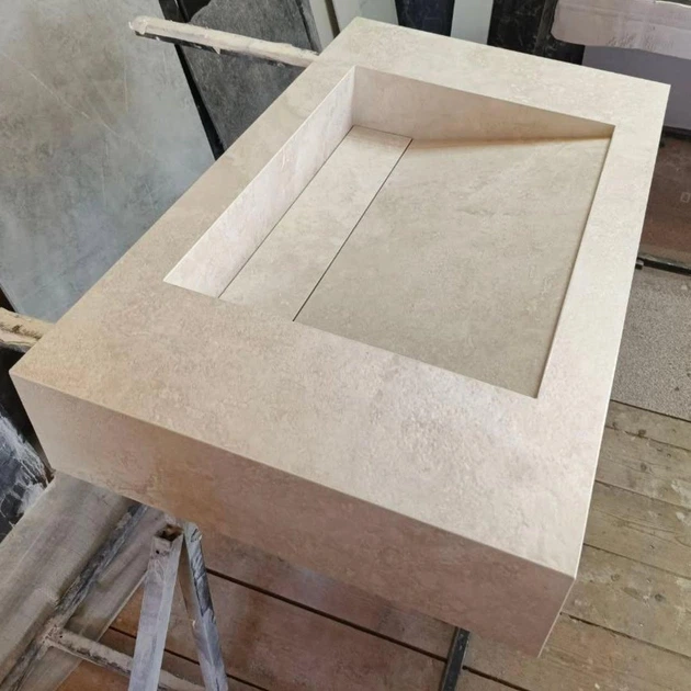 Умивальник підвісний з керамограніту із стільницею та щілинним зливом в бежевому кольорі