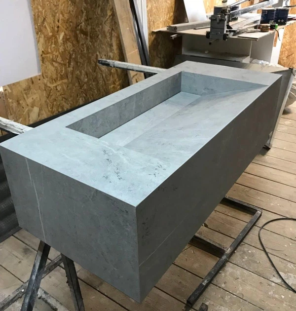 Умивальник підвісний з керамограніту із стільницею та щілинним зливом в графітовий 1000*500*300 мм