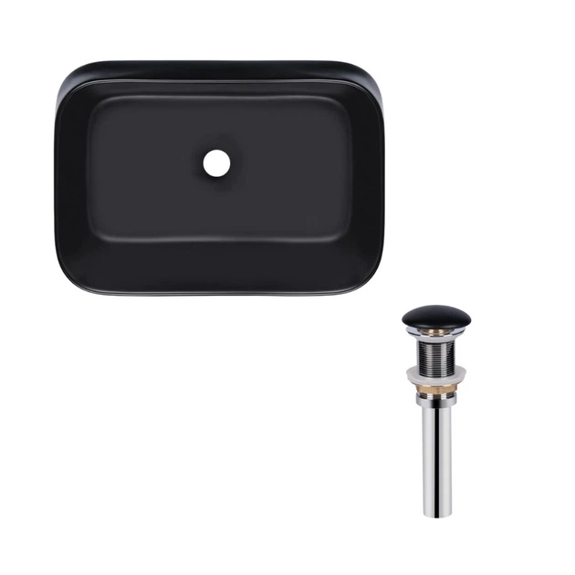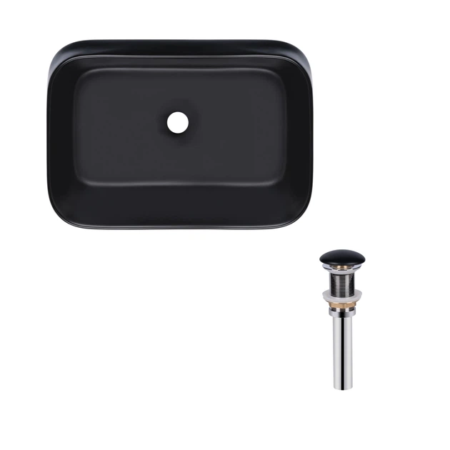 Раковина Qtap Scorpio накладна прамокутна 550х390х120 мм Matt Black + Донний клапан PU03