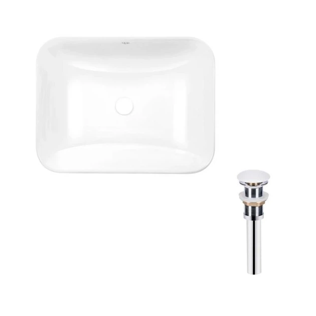 Комплект Qtap Scorpio: Раковина врізна прямокутна 610х380х150 мм White + Донний клапан PU02