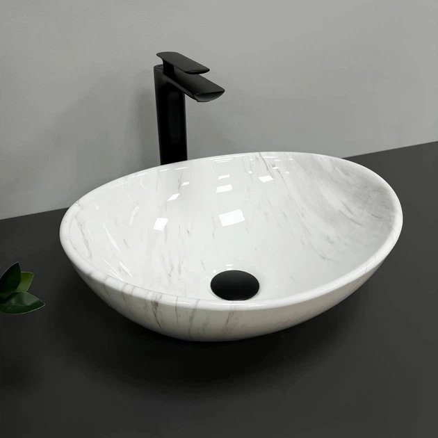 Умивальник (раковина) VBI PARMA STATUARIO BLACK VEINS GLOSSY накладний