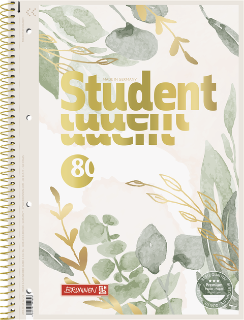 Зошит студент-блок Brunnen А4 на спіралі у клітинку 80 аркушів 90 г/м2 обкладинка крафт