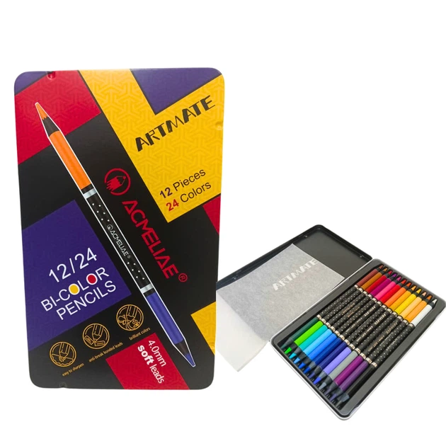 Набір кольорових олівців 12 штук, 24 кольори, Acmeliae двосторонні 4,0 мм у металевому пеналі 43076