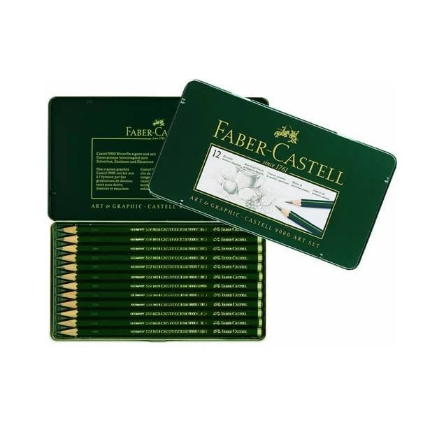 Набір олівців чорнографітних Faber-Castell Castell 9000 12 штук 2H-8B, в металевій коробці