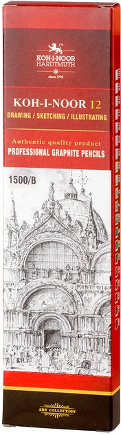 Набір графітних олівців Koh-i-Noor В без гумки корпус Жовтий 12 шт. (1500.B)
