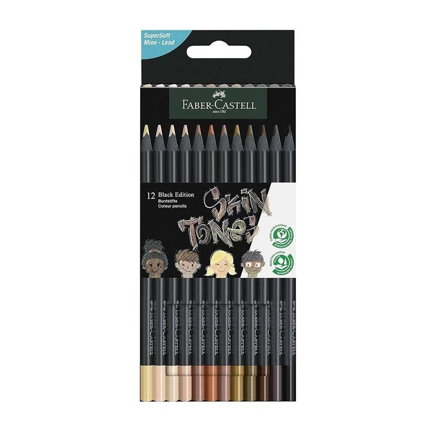 Олівці кольорові Faber-Castell 12 кольорів, чорне дерево, тригранні, Skin Tones, картон
