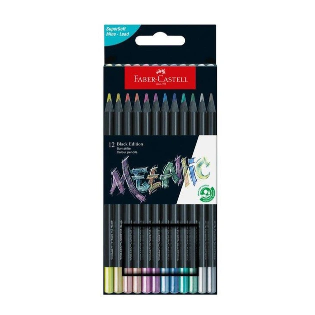 Олівці кольорові Faber-Castell 12 кольорів, чорне дерево, тригранні, металлік, картон