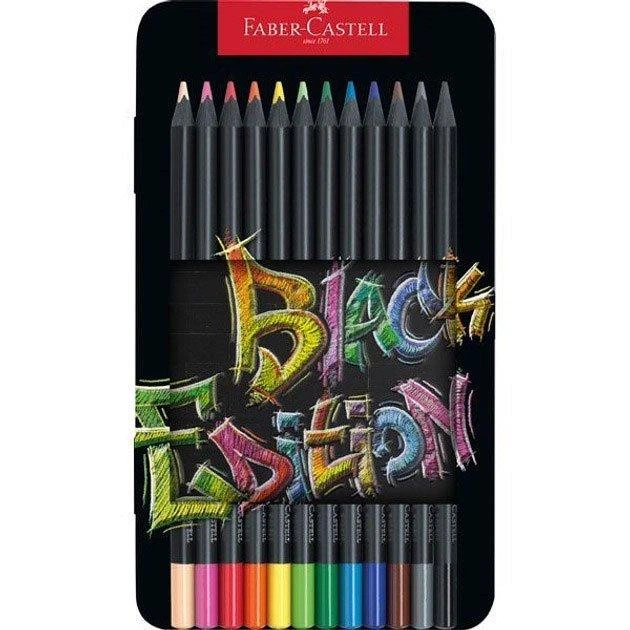 Олівці кольорові Faber-Castell 12 кольорів, чорне дерево, тригранні, металева коробка