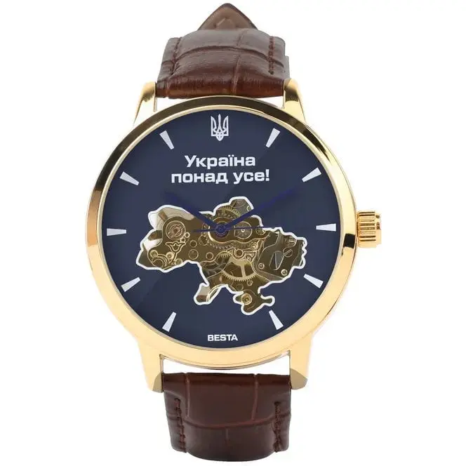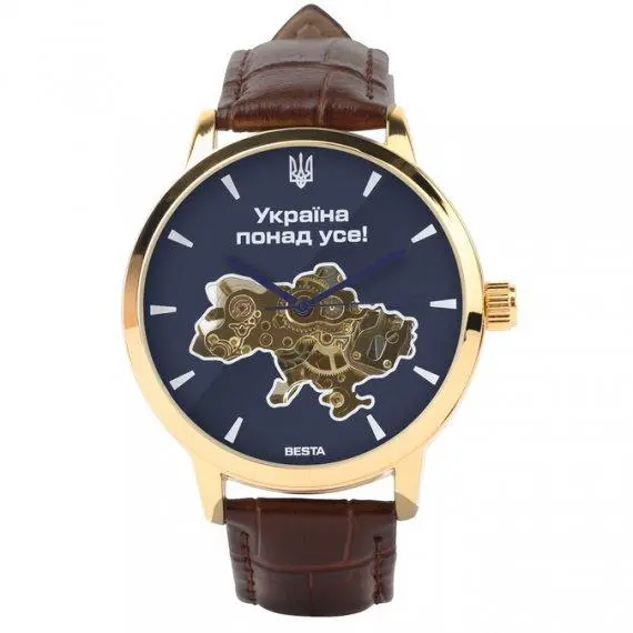 Наручний годинник чоловічий Besta Skeleton UA Золотий (3051)