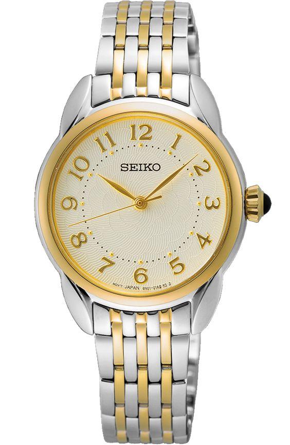 Жіночий годинник SEIKO CS DRESS SUR562P1 У МАГАЗИНІ BEZEL ТІЛЬКИ 100% ОРИГІНАЛЬНІ ГОДИННИКИ! Seiko SUR562P1 CS Dress Seiko Ladies SUR562P1 - ідеальний вибір, щоб ще більше доповнити чарівний вигляд кожної. Годинник має корпус, безель та браслет з нержавіючої сталі. Безель має золоте PVD-покриття, аналогічне деяким ланкам браслета. Двоколірна комбінація кольорів, що створює елегантне, класичне