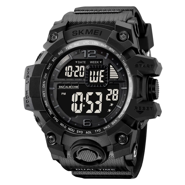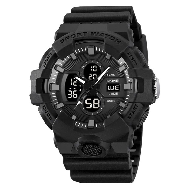 Годинник Skmei чорний спортивний електронний з будильником і секундоміром для чоловіків з каучуковим ремінцем (547689)