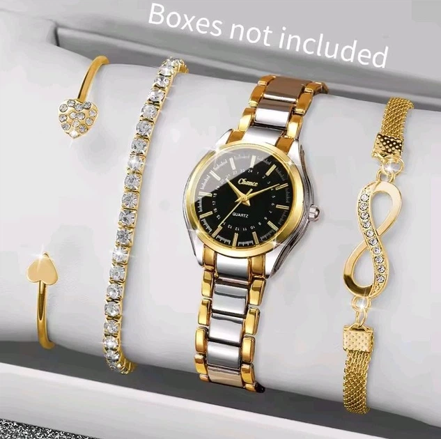 Жіночий годинник Geneva прикрашений стразами + набір прикрас (Maxr-00709)