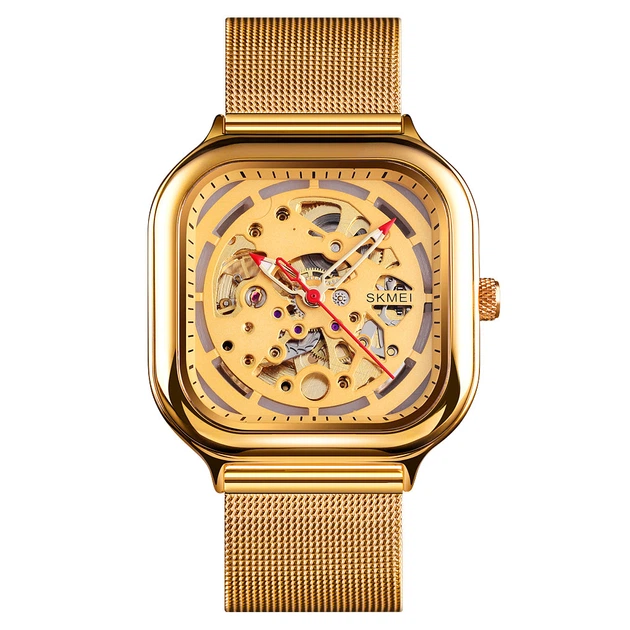 Чоловічий годинник Skmei золотистий кварцовий стрілочний для повсякденного використання з нержавіючим браслетом. (547216)