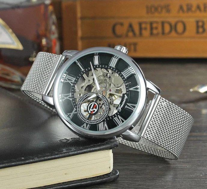 Механічний жіночий наручний годинник Forsining срібло з чорним механічний годинник для жінок аналогові стрілочні (513792)