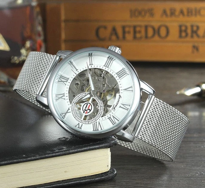 Механічний жіночий наручний годинник Forsining Срібло з білим металевий годинник для жінок аналоговийний наручний годинник (