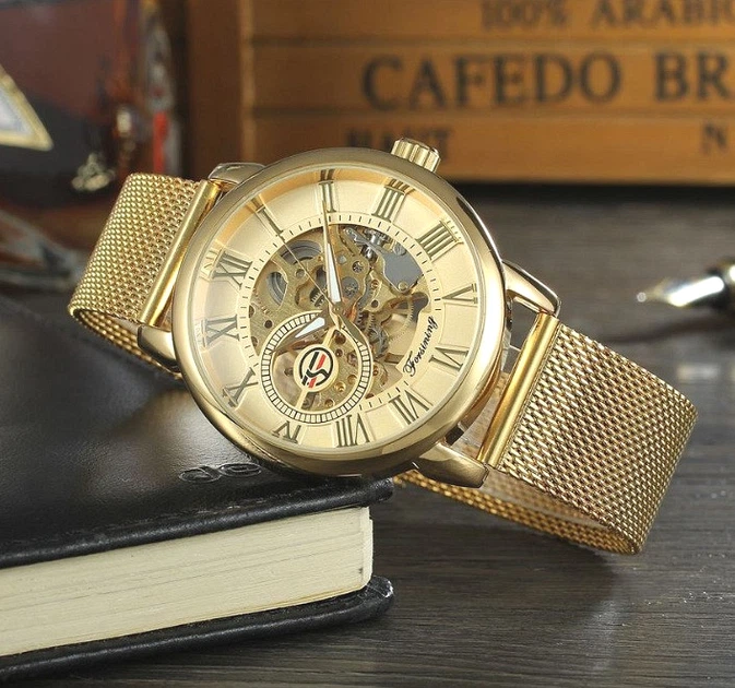 Механічний жіночий наручний годинник Forsining золотий з металевим ремінцем аналоговий дляного образу жіночий годинник (5137