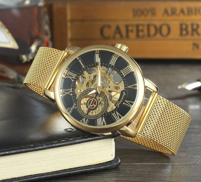 Механічний жіночий наручний годинник Forsining Золото з чорним металевийний годинник для жінок аналоговий наручний годинник