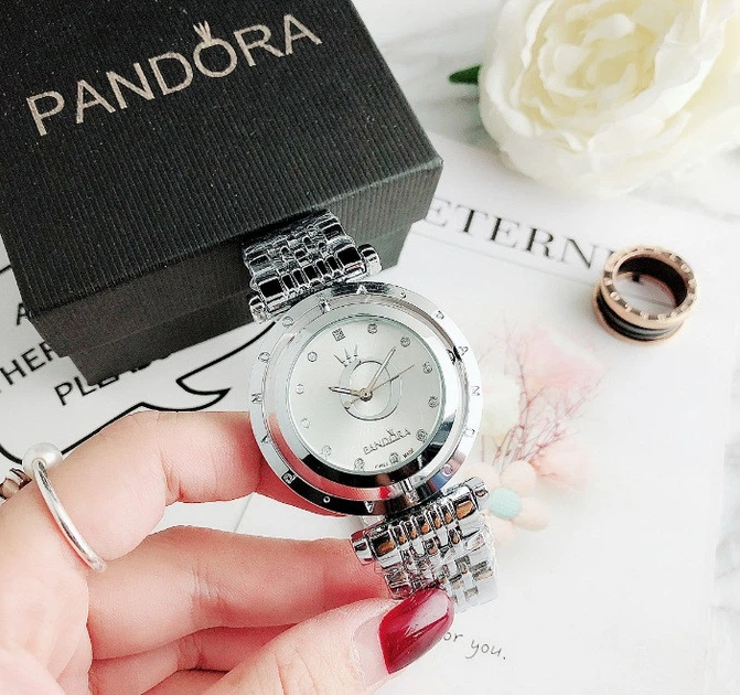 Стильний жіночий наручний годинник стиль Pandora Срібло з рожевим