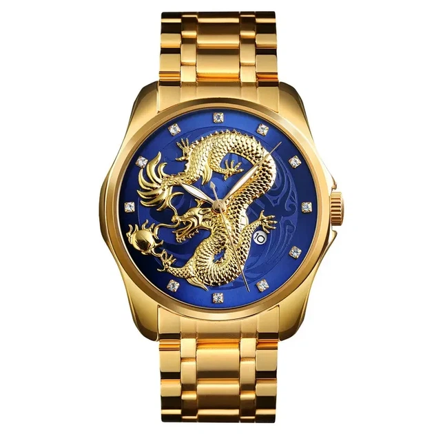 Годинник SKMEI Золотий Дракон водонепроникний із синім циферблатом.